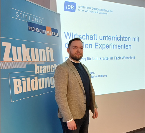 Ökonomische Bildung ist ein zentraler Baustein der MINT-Förderung – doch oft wird sie nur allgemein und fächerübergreifend vermittelt. Um Lehrkräfte im Schulalltag zu unterstützen, lud die Stiftung NiedersachsenMetall Anfang Januar 2026 zur Fortbildung „Wirtschaft im Unterricht“ ein. 15 Lehrkräfte aus ganz Niedersachsen nahmen an dem eintägigen Seminar teil. Als Referent gewann die Stiftung Albert Henning Müller, Wissenschaftlicher Mitarbeiter am Institut für Ökonomische Bildung (IÖB) der Universität Oldenburg und Mitentwickler des OX-Lab. Unter dem Motto „Wirtschaft lernen im Labor“ werden Unterrichtsinhalte durch handlungsorientierte Experimente greifbar gemacht.
