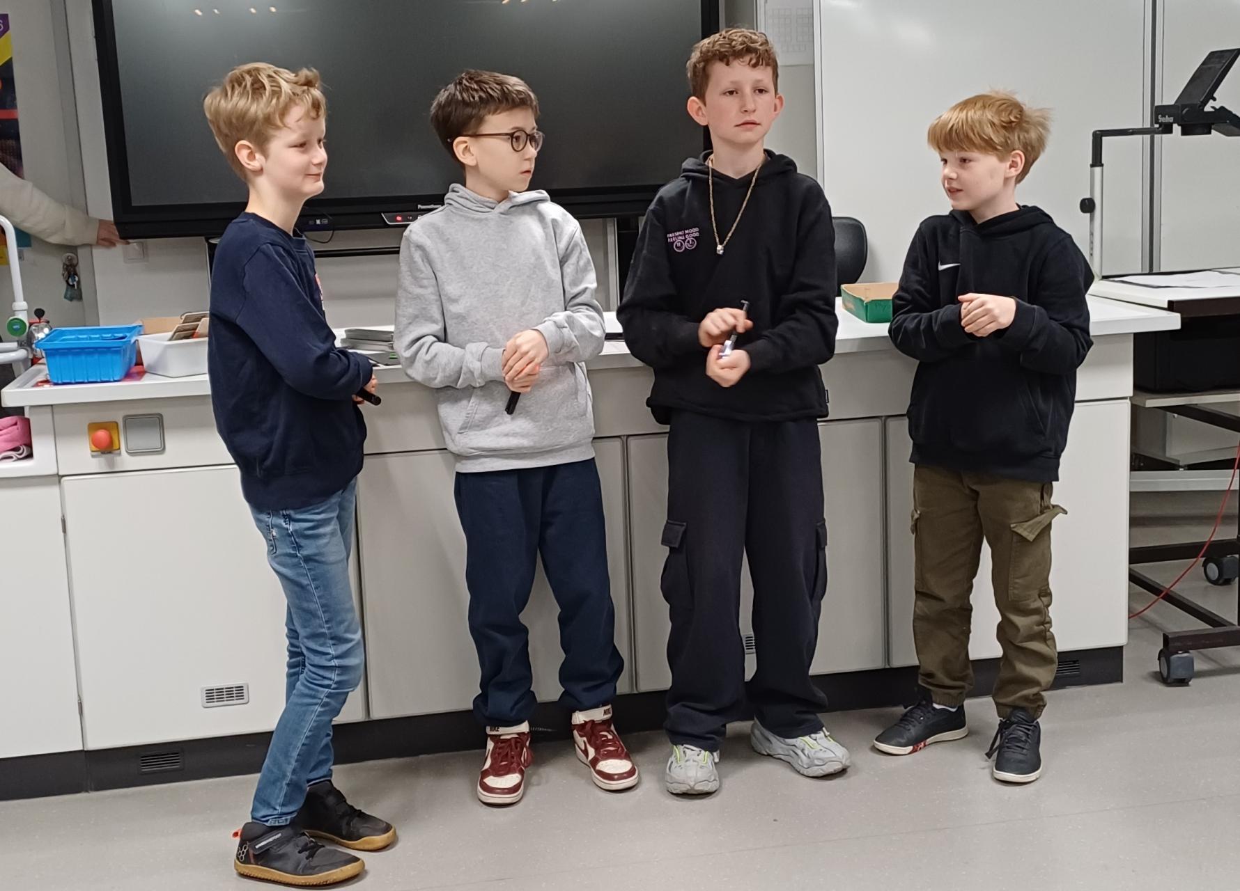 Das Besondere hierbei war, dass die Grundschulklassen zu Experimentierstunden in das Gymnasium Hoffmann-von-Fallerlsleben eingeladen und dort bei den Kleingruppenexperimenten durch ältere Schülerinnen und Schüler betreut wurden. Durch diese Konstellation profitierten nicht nur die Grundschulklassen, sondern ebenso die Schülerinnen und Schüler aus den höheren Jahrgängen. Ihr Einsatz als „Nachwuchslehrkräfte“ war sehr engagiert, kompetent und erfolgreich.